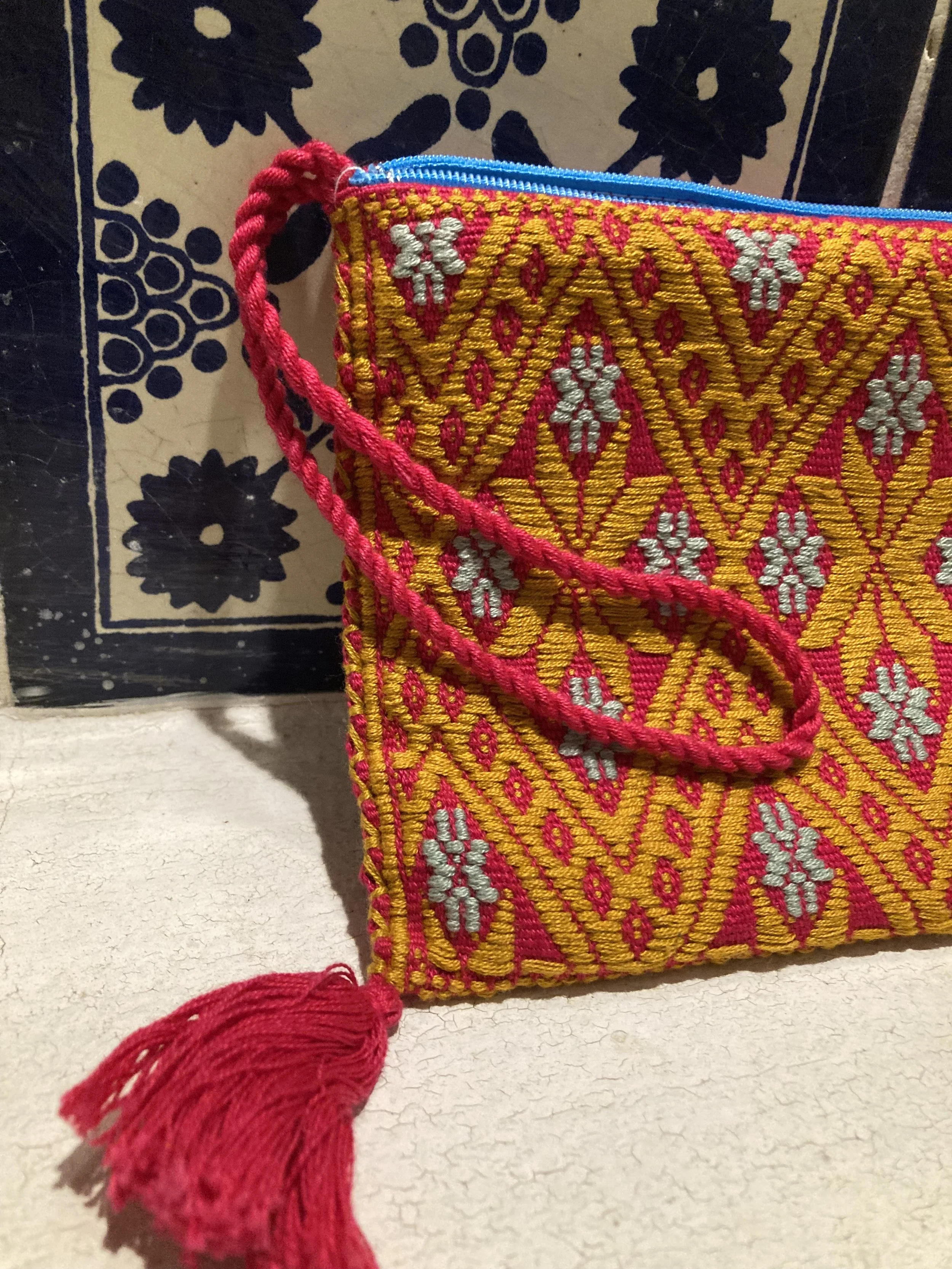 Textile artisans in the highland communities of Chiapas use a back strap loom to weave their fabrics. This type of loom is extremely portable and is set up in the fields or home so weavers can pick up their craft throughout the day. In addition to traditional uses they have for textiles in their personal lives, many artists have adapted their fabrics into items like zippered pouches of all styles and sizes. These designs are common to the highland communities of San Andres Larrainzar and Magdalena Aldama.